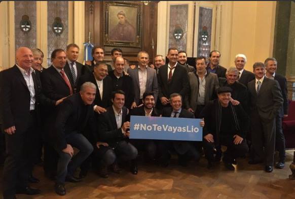 In a show of support, some members of Argentina's 1986 World Cup squad posed for a photograph that contained a written plea: "#NoTeVayasLio" ("Don't Go Lio.") Maradona did not pose for the photo.